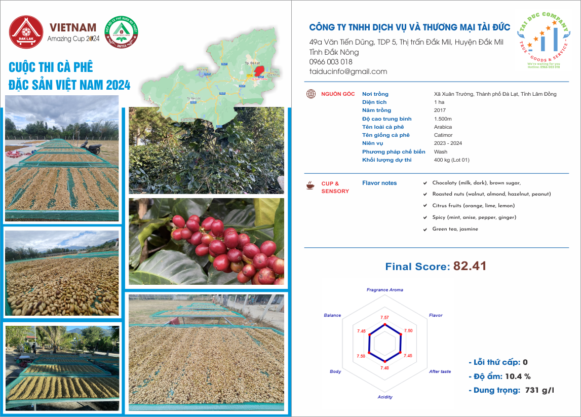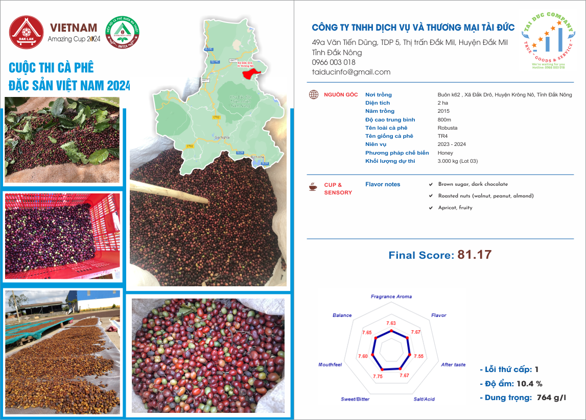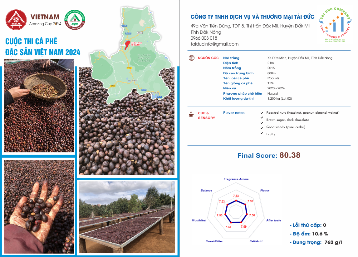 Địa chỉ vùng nguyên liệu: Xã Đức Minh, Huyện Đắk Mil, Tỉnh Đắk Nông